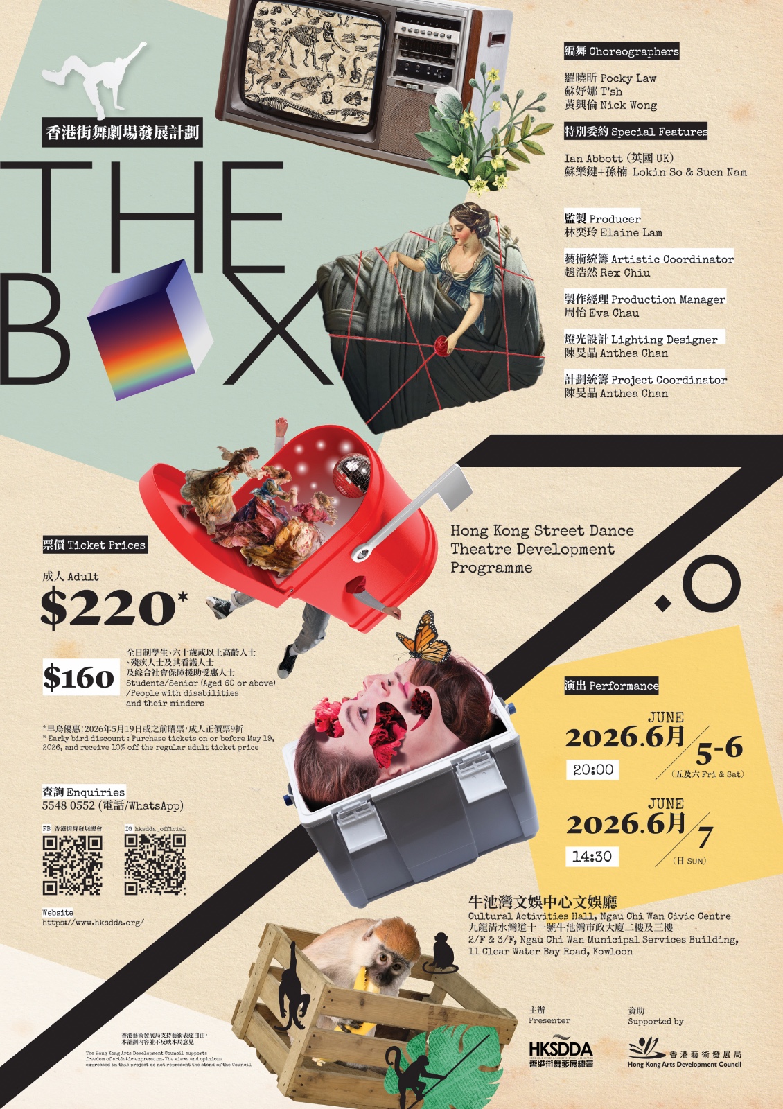 由香港街舞發展聯盟打造出街舞專屬的劇場演出 ─ 《THE BOX – Street Style Lab》。由六位街舞界實驗者編出三支各具風格的作品,一同呈現舞台!